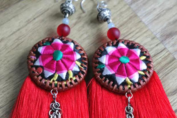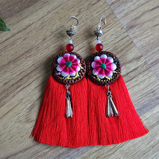 Handmade old embroidery rattan tassel earrings ethnic style jewelry gifts can be collected jewelry