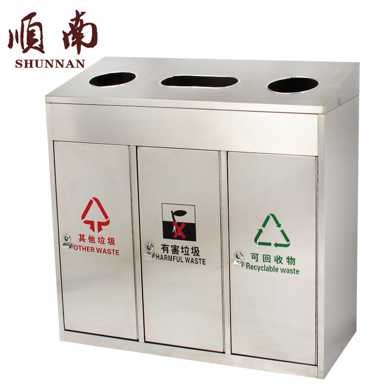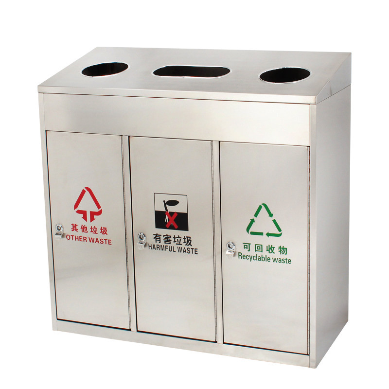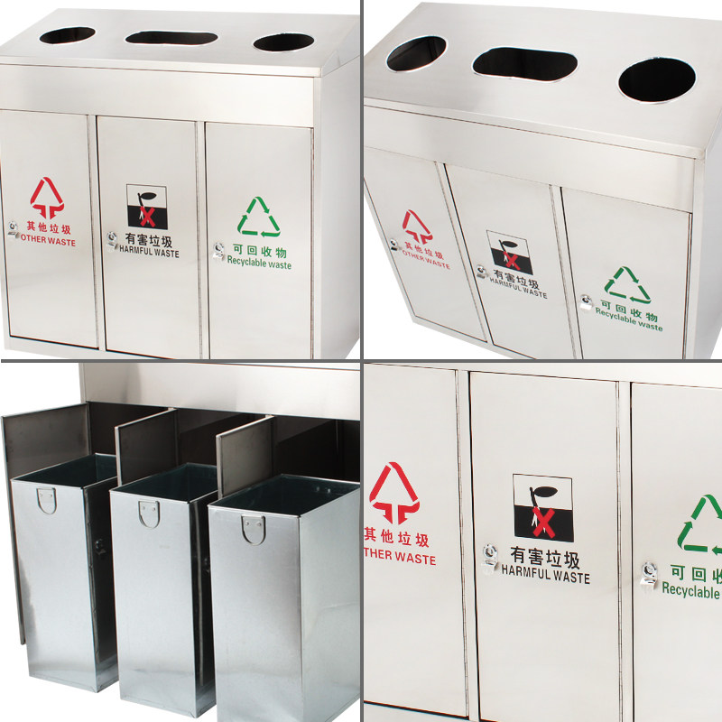 Cisnan Stainless Steel Trash Can Triple Classification Environmentally-friendly Dustbin Outdoor Park Mall Large Number Sanitation Peel Bucket