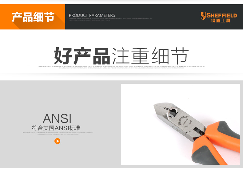Steel shield S045008 bicolor handle 6-inch flat-mouth pliers S045015 6-inch multipurpose diagonal-billed nipper pliers