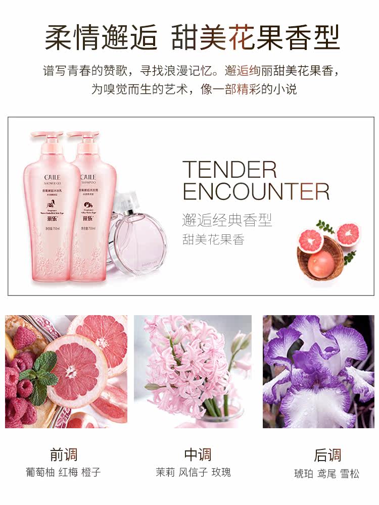 Caile Aromatherapy Encounter Shampoo Shower Gel Combination Set Men's and Women's Fragrance Lasting Fragrance Oil Control Shampoo