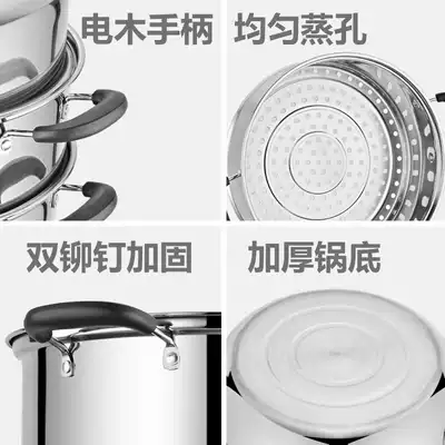 Large steamer Stainless steel extra thick double pot steamer Household 34 36 38 40cm Commercial 55cm steamer