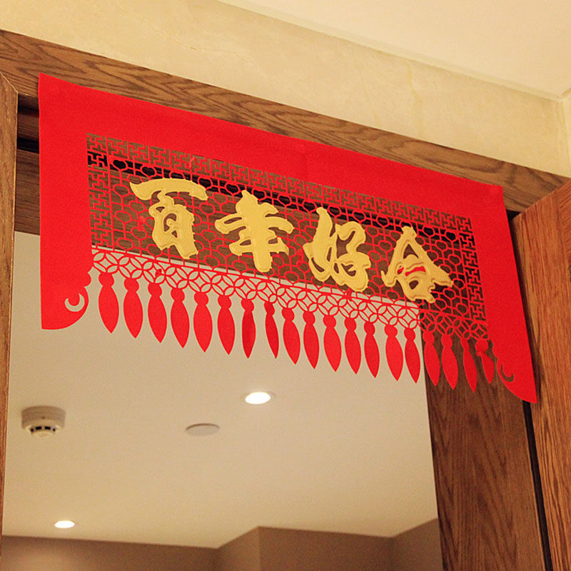 Wedding supplies Wedding room Festive lintel Door width Door curtain Wedding room decoration Door union banner Wedding flannel Happy word lintel