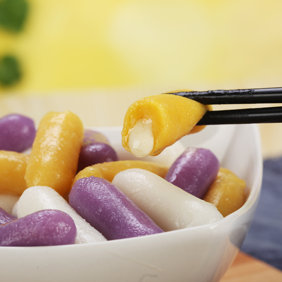 Chef Shi Bo cheese rice cake Korean Army hot pot sandwich brushed rice cake strips Instant spicy fried cheese rice cake 500g