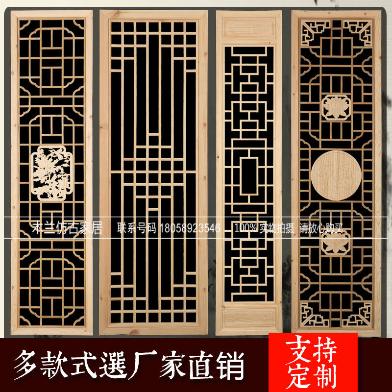 Dongyang wood carving solid wood pattern Chinese antique screen suspended ceiling new Chinese Japanese living room porch cabinet background partition