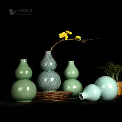 Longquan celadon vase gourd dry flower arrangement ceramic living room ornaments porcelain home decorations hydroponic plants