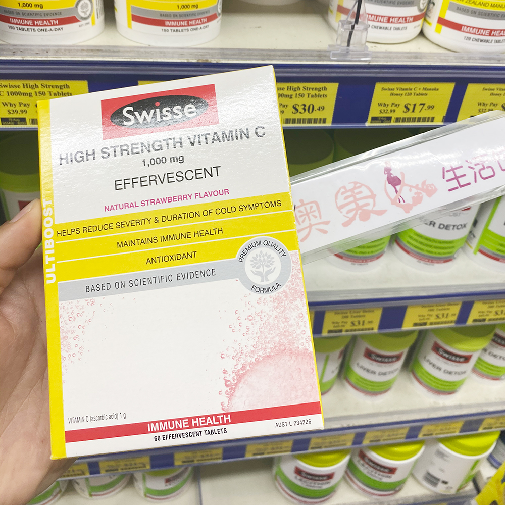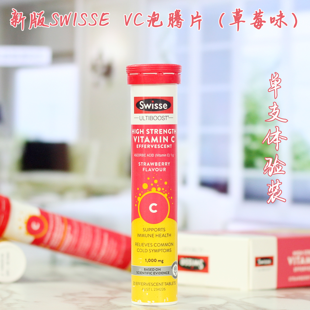 Australian SWISSE Vitamin C Concentrated Sheet VC Multivitamin Sparkling Ingots Strawberry Flavored Orange Taste