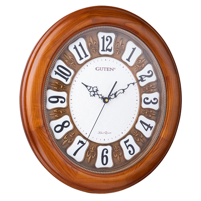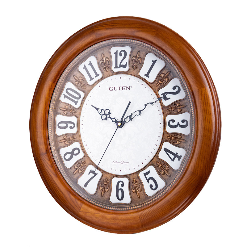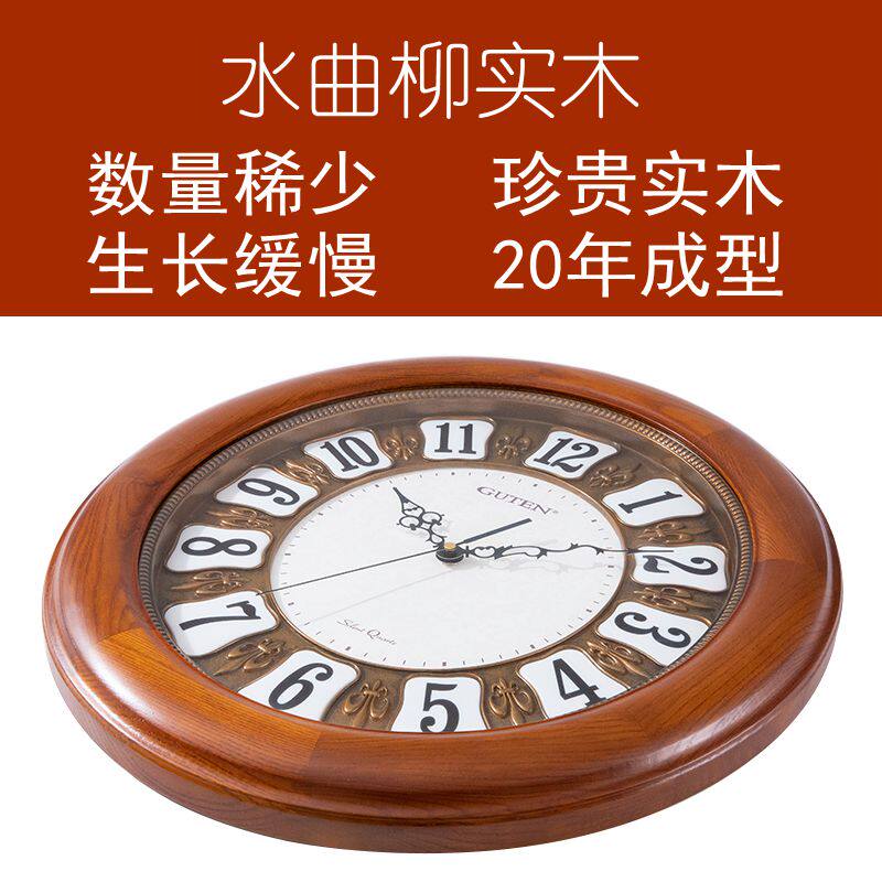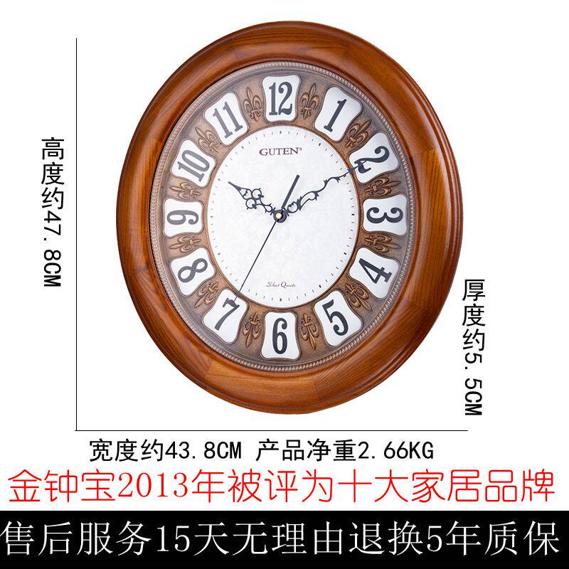 Golden Bell oval large solid wood wall clock European style retro living room clock table Bedroom creative mute quartz clock