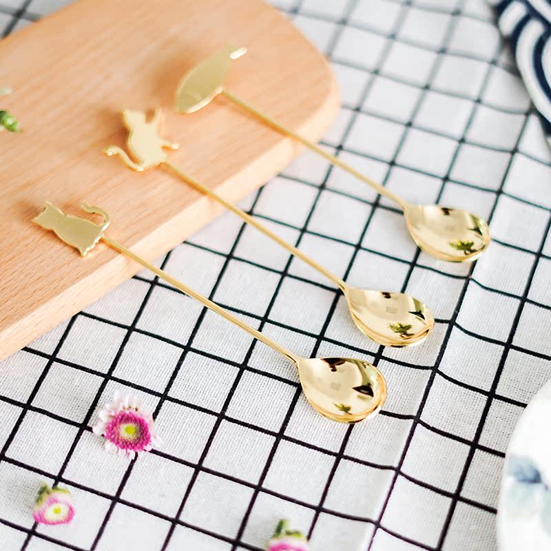 Spot Japan High Mulberry Metal Elfin Happy Wedding Cat Fish Gentleman Spoon Cutlery Cutlery Suit 3 pieces-Taobao