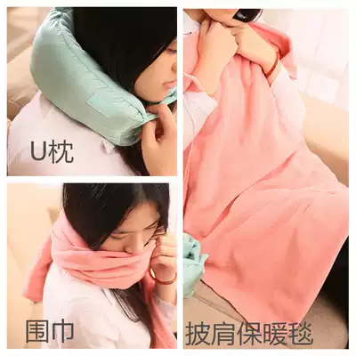 Multifunctional travel U-shaped pillow blanket bib U pillow shawl scarf three-in-one portable aircraft cervical pillow