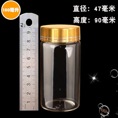 47mm diameter gold silver lid transparent glass bottle agarwood flower tea candy bottle high borosilicate glass bottle with cap