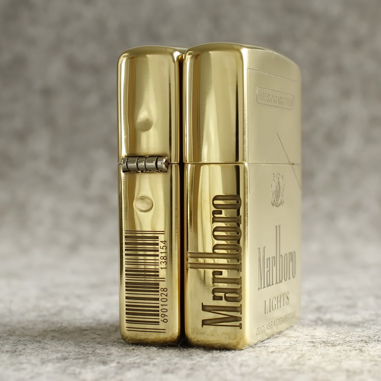 Original zippo windproof lighter pure copper ancient silver five-sided conventional armor etched Marlboro cigarette case