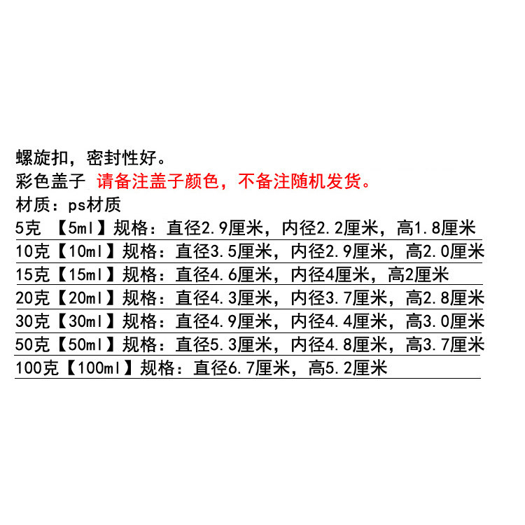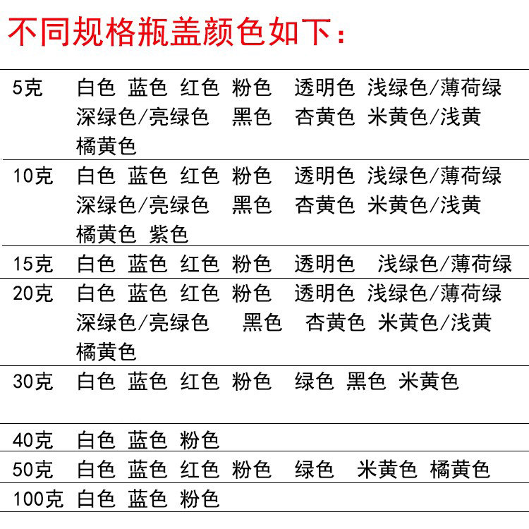 Please contact the customer service inner cover 10 (gasket) 5 g 5ml (white bottle body) 10 g 10ml (white bottle body) 15 g 15ml (white bottle body) 20 g