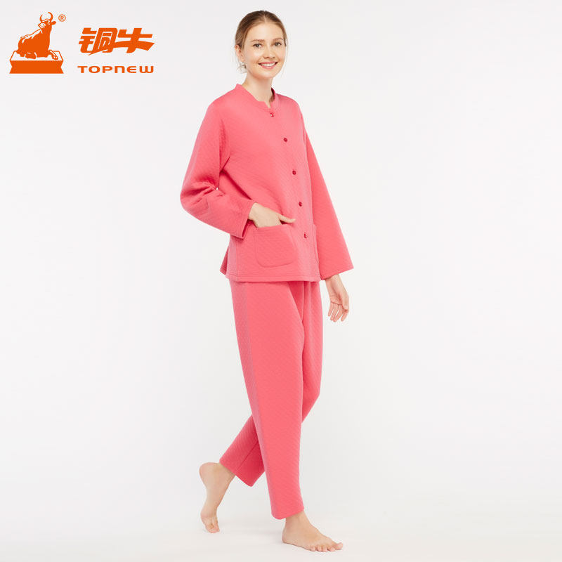 Copper cow women's home clothes suit cotton placket autumn clothes sanitary pants thickened autumn and winter loose heating pants VJ055