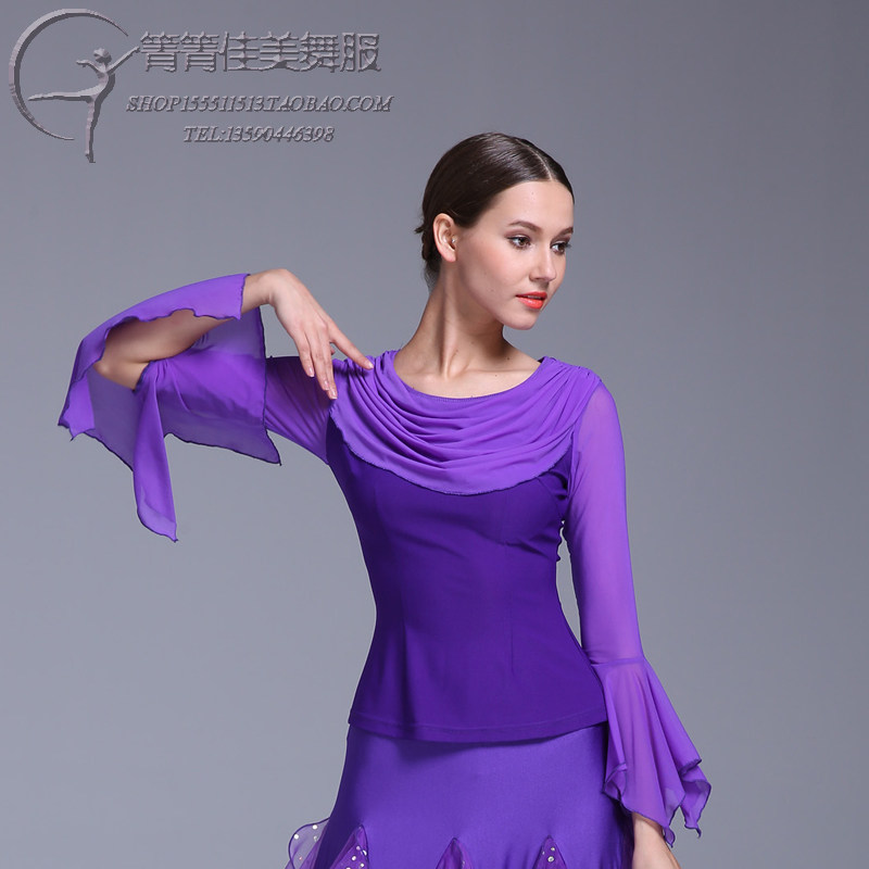 2021 spring and summer new modern dance suit ruffle sleeve stitching square dance top adult female national standard social dance clothing