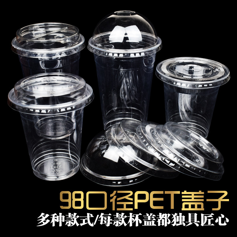 Disposable PET cold drink cup cover 98 caliber imperial tea semicircular cover Hemispherical cover High cover Half open cover Milk foam cover flat cover