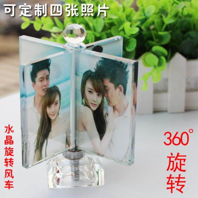 Luminous windmill photo customization diy gift creative 360 degree rotation portrait stands personalized crystal phase