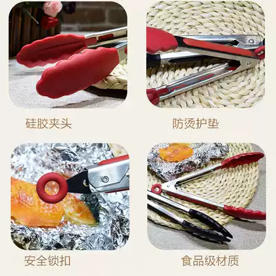 Korean-style high temperature resistant silicone food fried steak barbecue bread clip kitchen stainless steel food clip