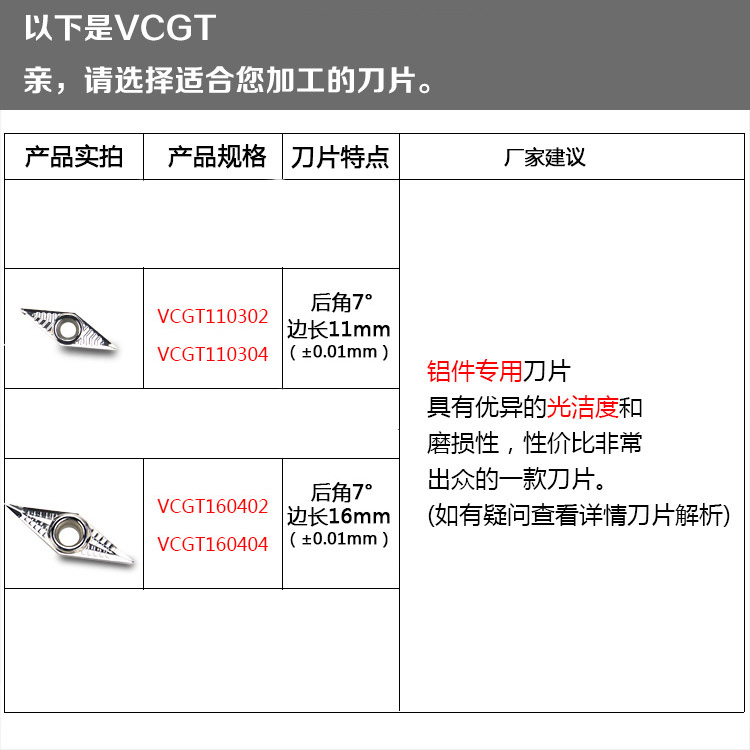 Aluminum blade outer circle inner hole CCGT09T304 CNC knife grain TNMG1604 DCGT11T304-AK H01