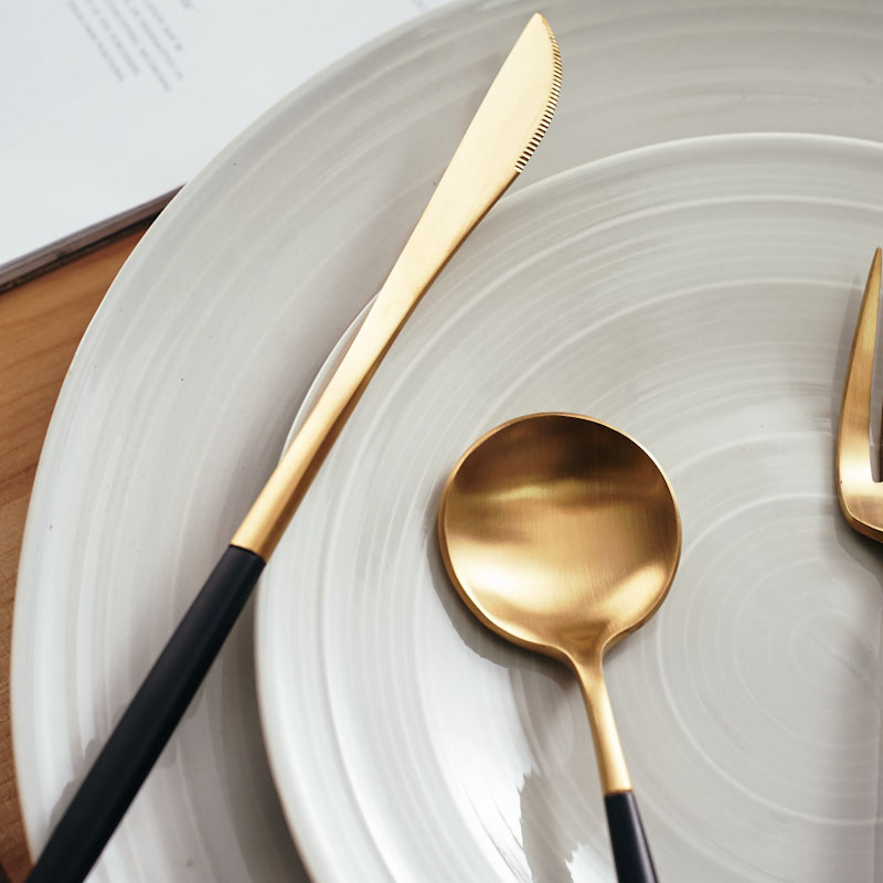 Playmobil Nordic New Black Gold Stainless Steel Western Tableware Spoon Dessert Knife Fork Spoon Steak Knife Fork Set