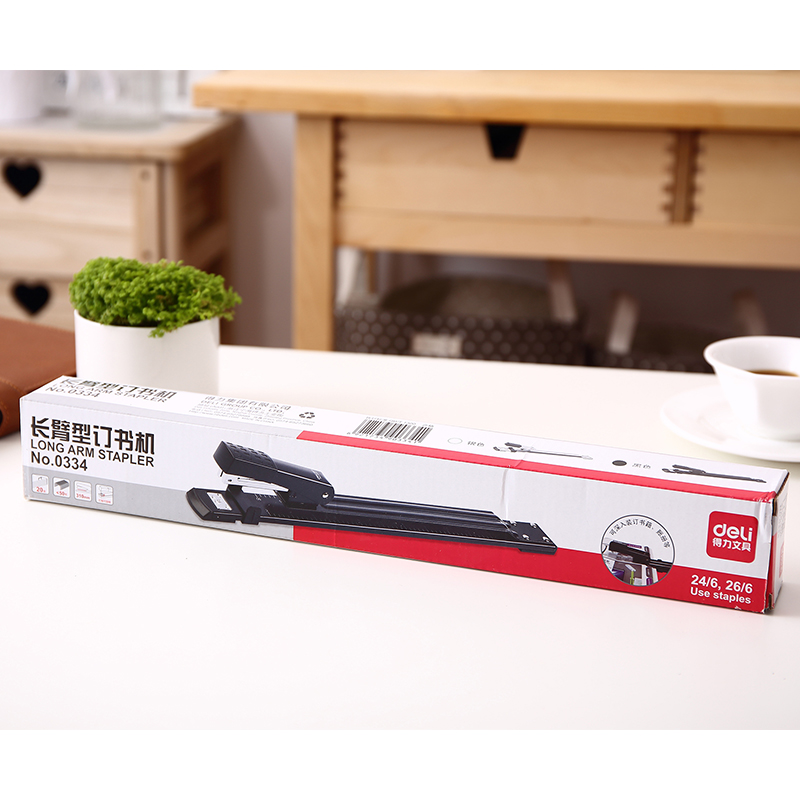 Deli book seam stapler Extended binding machine Long arm stapler A3 seam stapler Large extended riding stapler