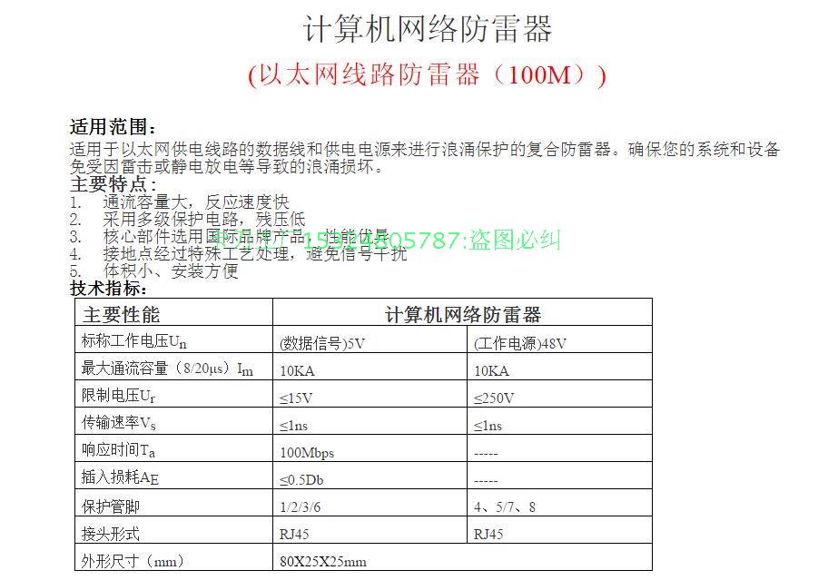 Single-channel network lightning protection device RJ45 port network cable lightning protection device Ethernet 100M network lightning protection equipment