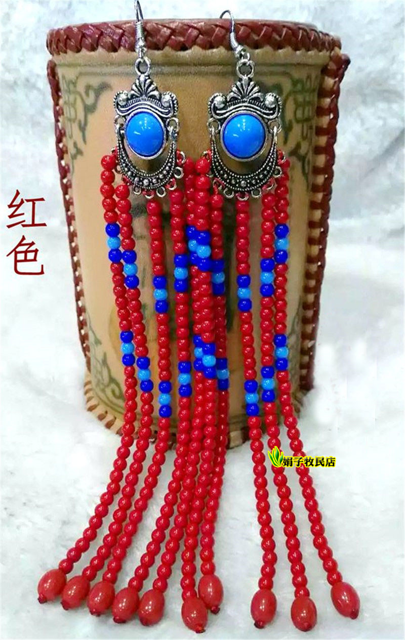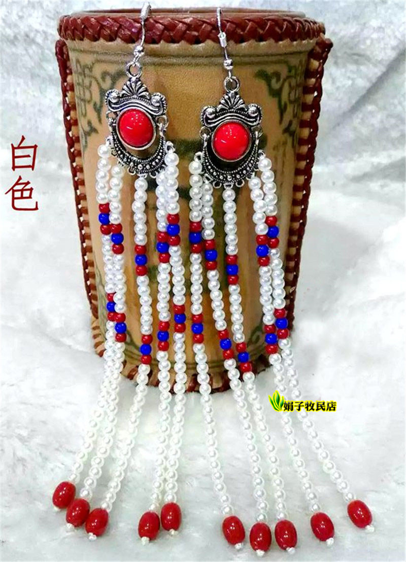Mongolian national style long version silver tassel beaded drop earrings earrings earrings Femininity personality wild long pearl earrings