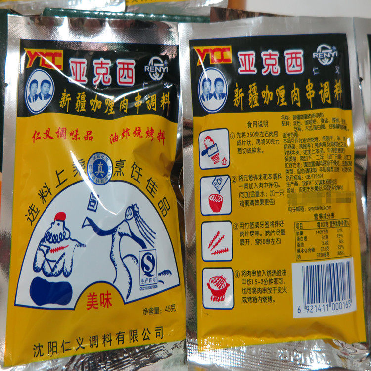 Xinjiang Yaxi curry meat string seasoning Renyi brand double head logo added to flavor and fried barbecue
