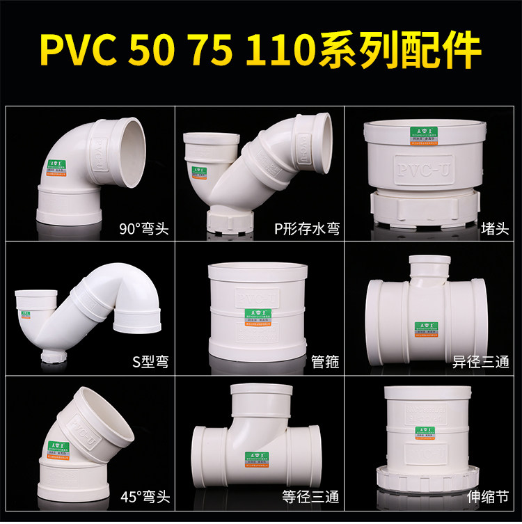 PVC drain pipe 50 plastic 75 drain 110 sewer pipe rainwater pipe joint s bend direct elbow tee p