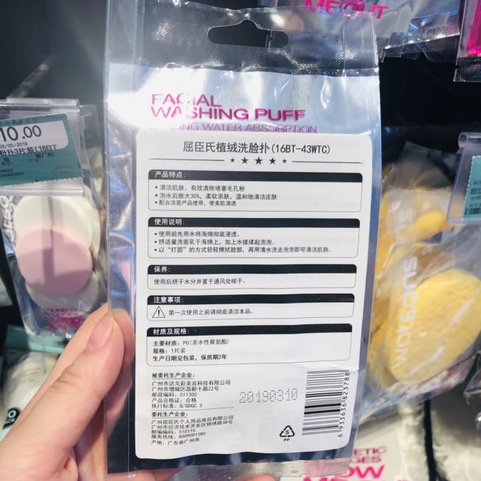 A piece of Watsons flocking 3D massage Natural wood pulp Face wash sponge Face wash sponge Skin wash sponge