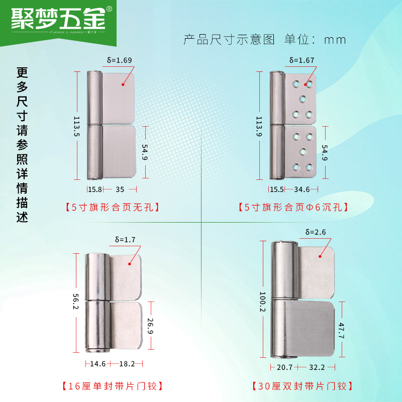 8 cm single seal with sheet door articulated (201#) 12 cm double seal with sheet door articulated (201#) 16 cm single seal with sheet door articulated (201#) 16-1 double seal with sheet door hinge