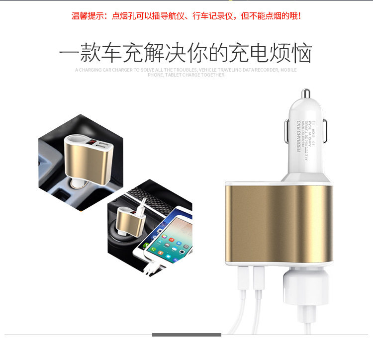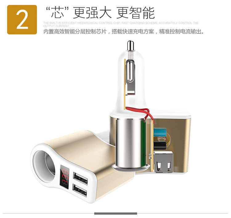 Weixuan car charger car charger one drag two usb transfer interface mobile phone smart head multi-function car cigarette lighter