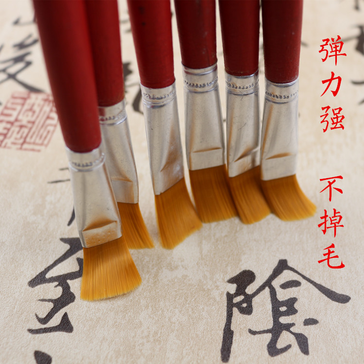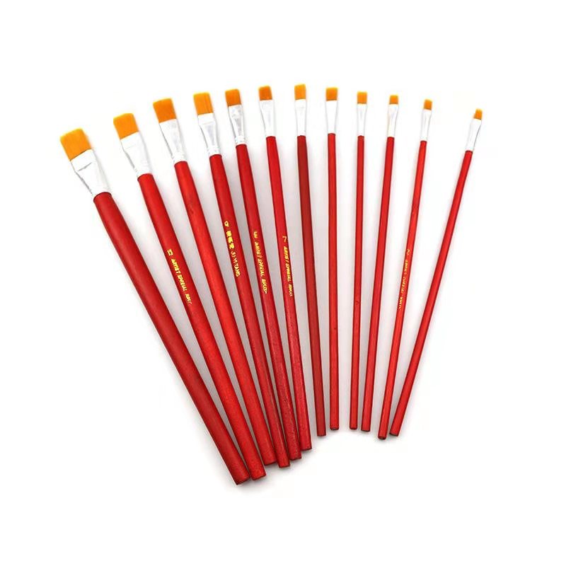 Red rod nylon hair flat head oil painting row pen gouache watercolor pen Industrial paint children's acrylic painting art brush