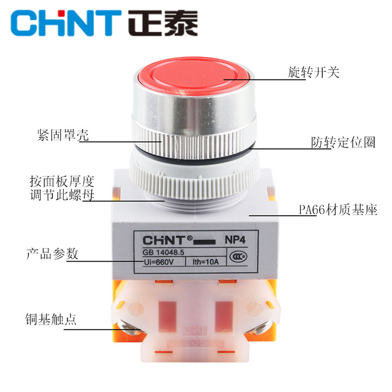 chnt Zhengtai flat head self-reset button switch NP4-11BN self-lock BNZS often open normally closed red green