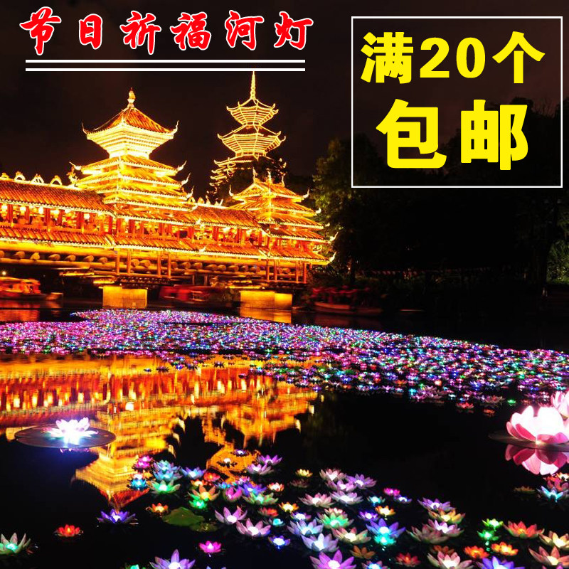 Festival blessing candle lotus lamp Tanabata creative gift river lamp mid-autumn wishing lamp lotus lamp water lamp Buddha lamp