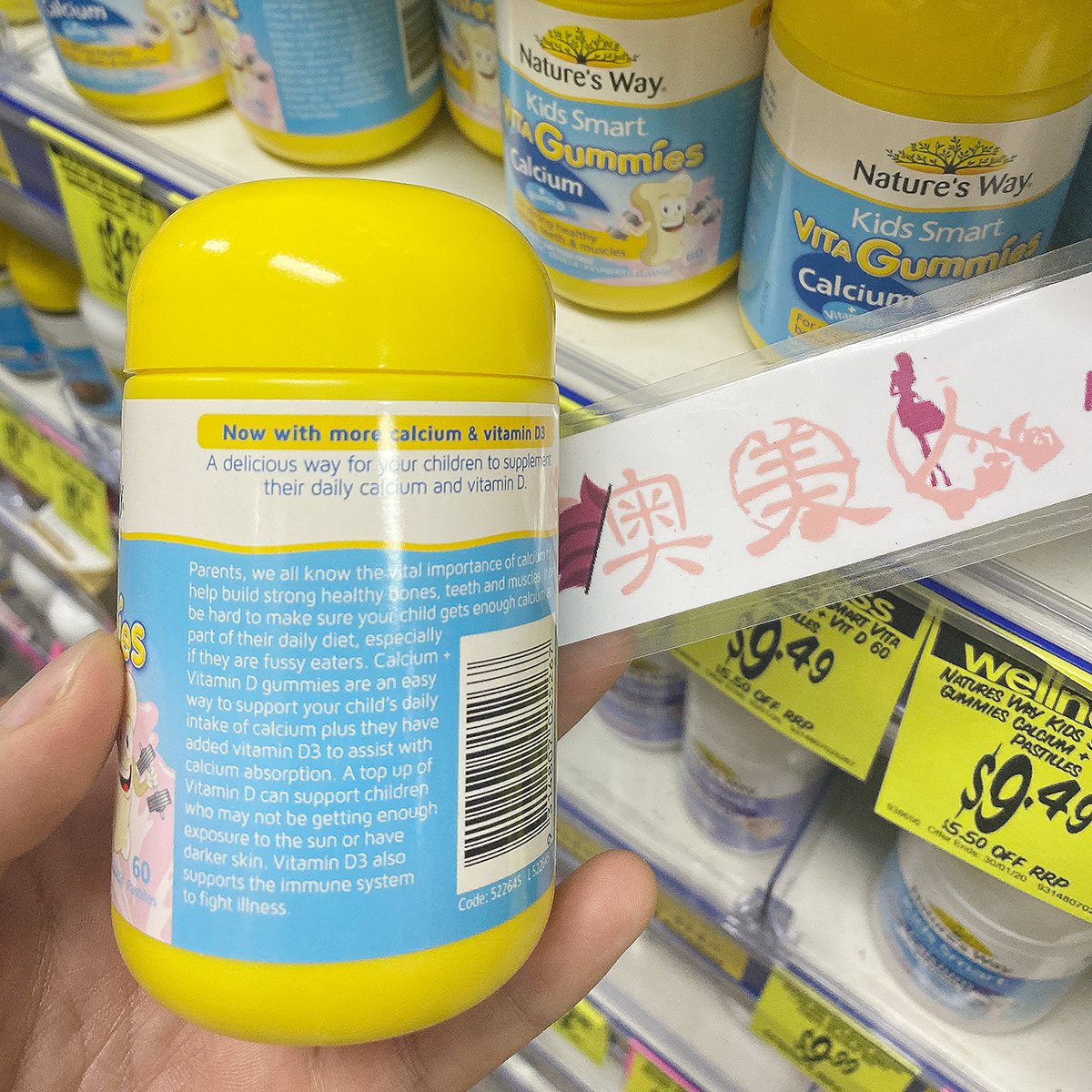 New version of Australian NaturesWay Jiasmin natural children's calcium vitamin D chewing gummies 60 capsules in stock