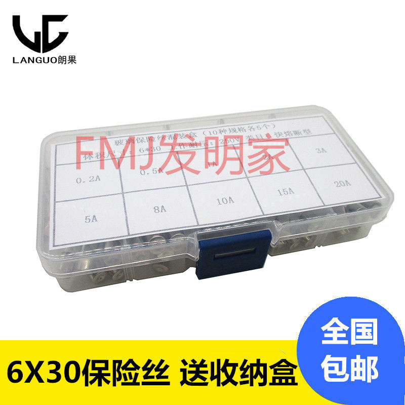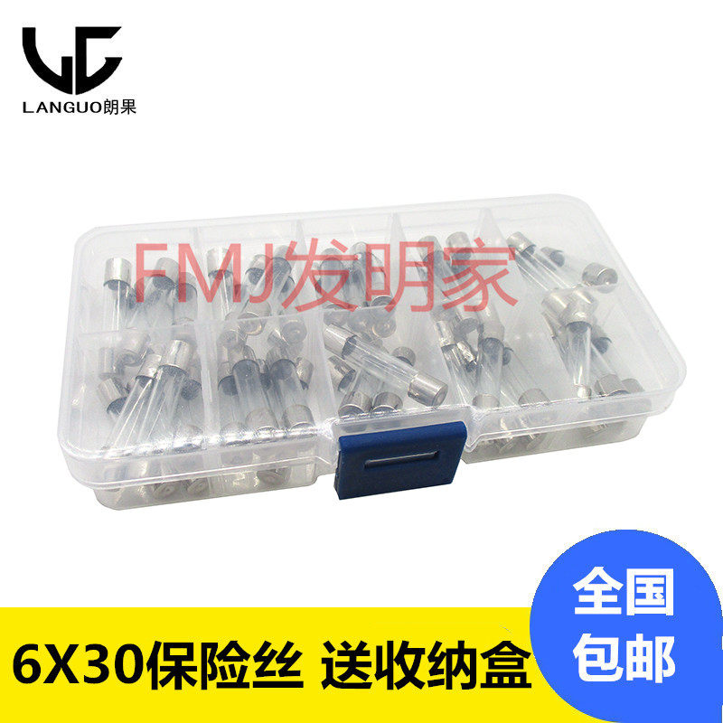 Glass fuse tube 6×30mm 250V 0 5A~20A Mixed package Household appliances Car cigarette lighter maintenance