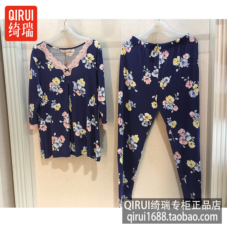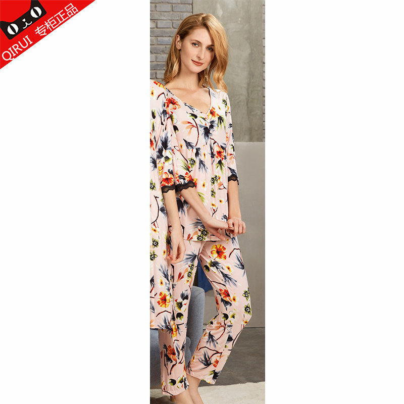 Chery Spring New Lady Model Pajamas Comfortable long sleeve Mommy elegant printed trousers home suit