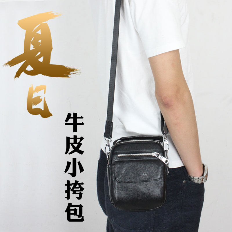 Mini genuine leather bag inclined satchel light small satchel bag for real cow leather bag men's single shoulder bag with shoulder bag soft leather