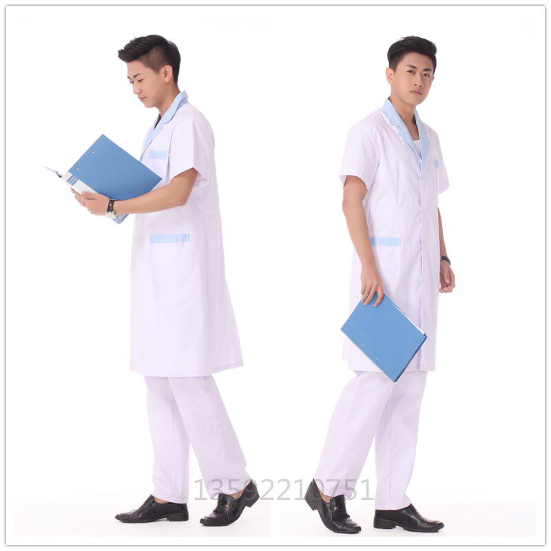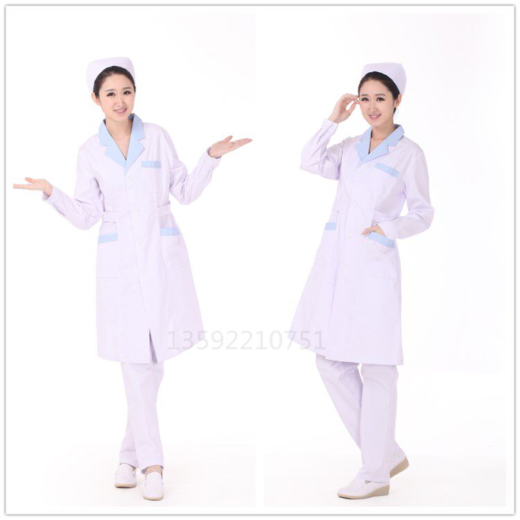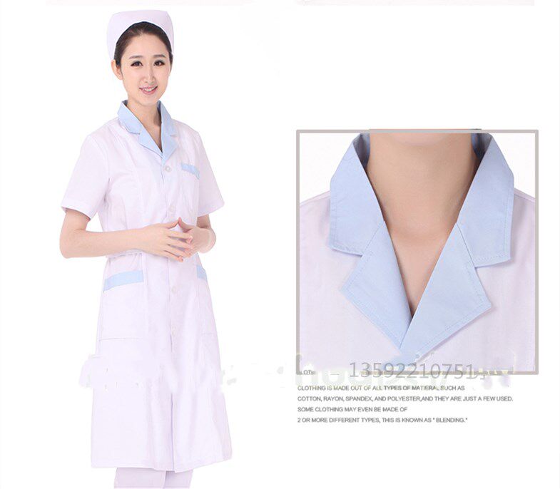Nurse dress white blue collar summer dress length sleeve white coat doctor to take dental oral pharmacy beauty promotion