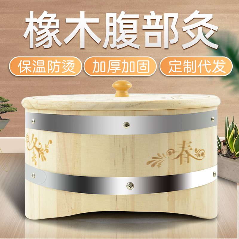Round Belly Moxibustion Box Wooden Ai Box Waist Family Type Eidermy Moxibustion Apparatus Solid Wood Warm Moxibustion Instrument