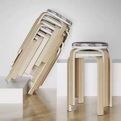 Round stool stackable solid wood living room small chair home dining bench simple modern dining table bench commercial dining chair