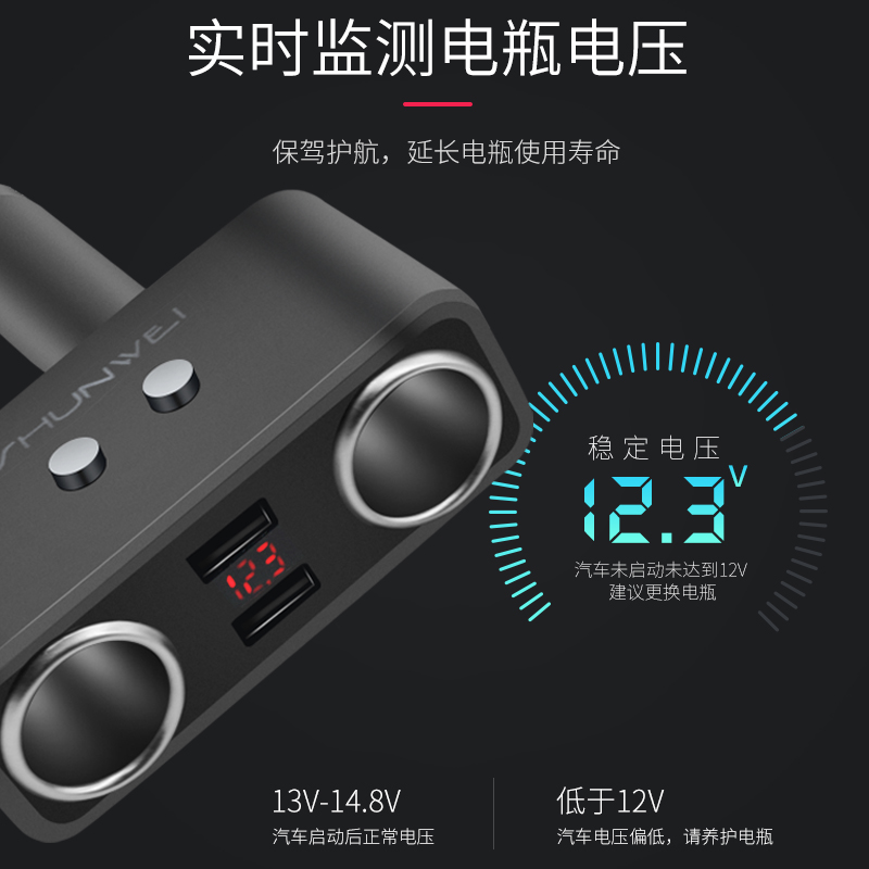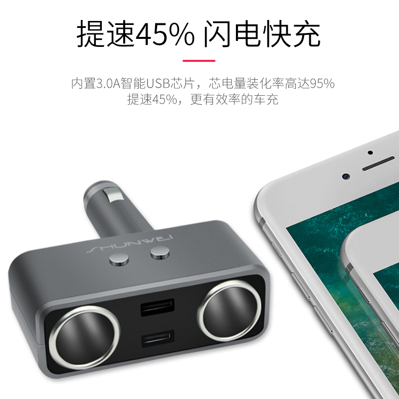 Shunwie cigarette lighter one drag triple multifunction with plug car charging socket one drag two with usb on-board charger