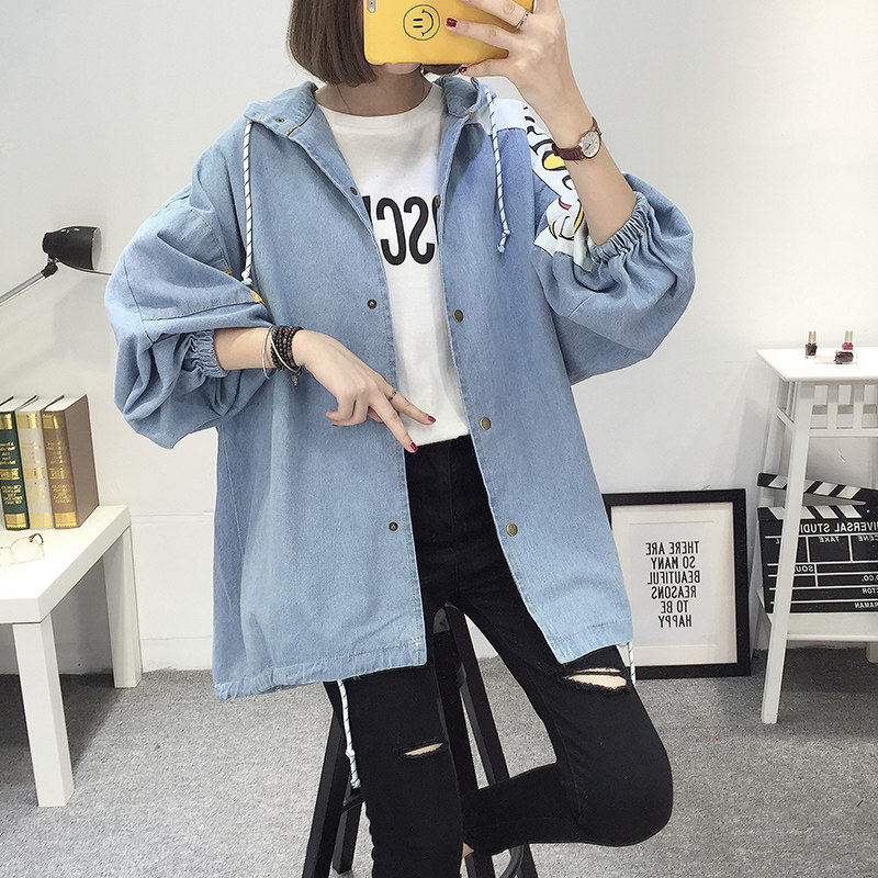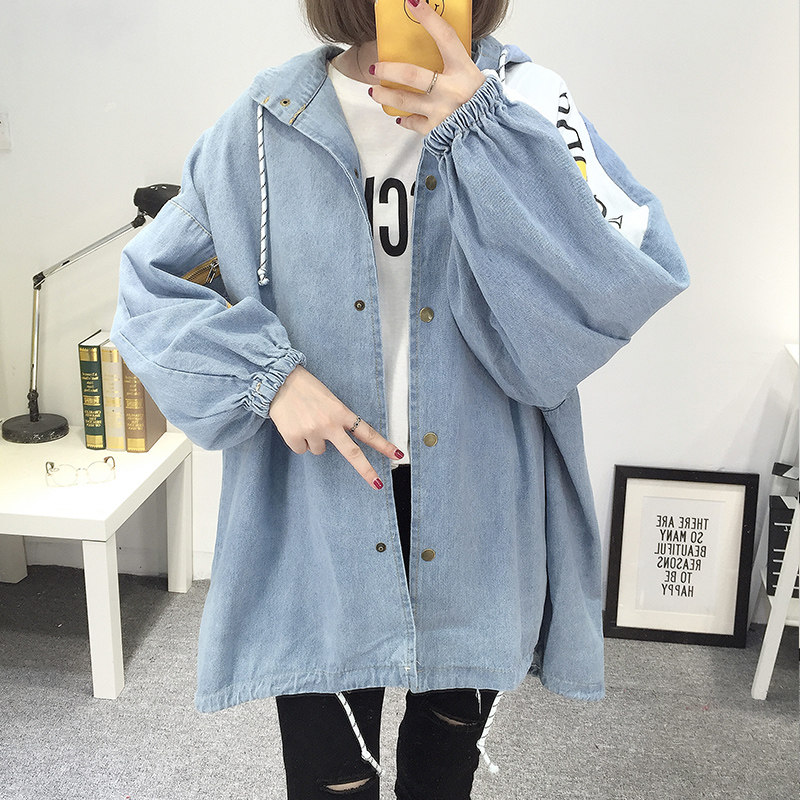 New gestational woman dress denim jacket fashion exterior wearing Korean version large size loose medium long version with cap spring and autumn blouses