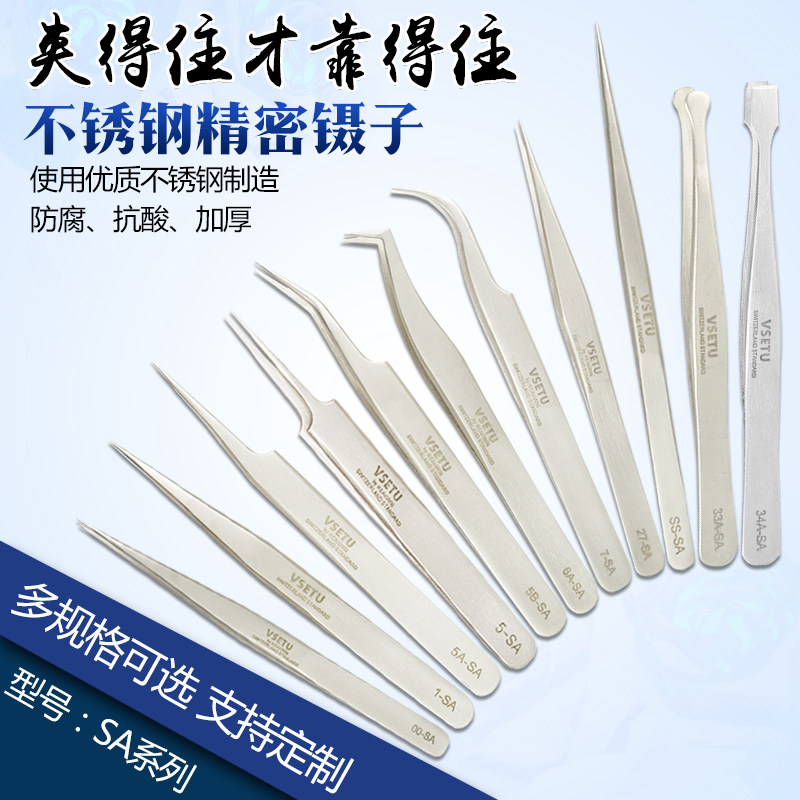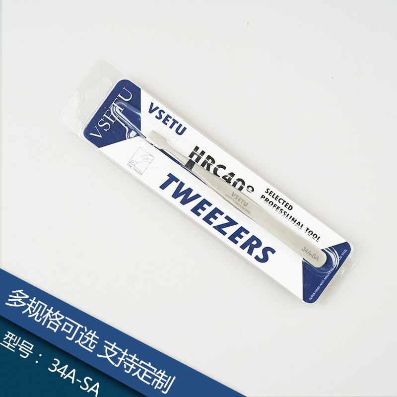High quality precision stainless steel Flat Head Tweezers 34A-SA Manual stamp clip for electronic repair patch