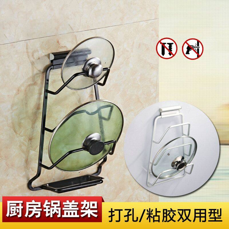 Black lid rack with defrosting pan wall-mounted shelf European-style antique kitchen containing articles shelving without punch