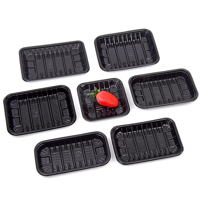 1912 disposable Black fresh tray rectangular supermarket plastic fruit vegetables pork fresh dish packing box
