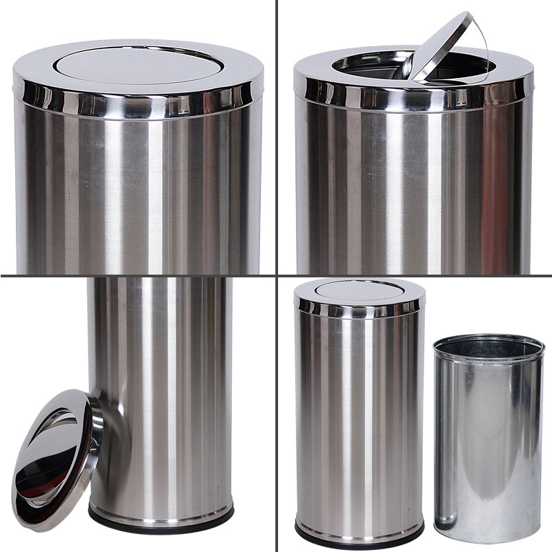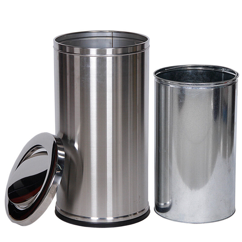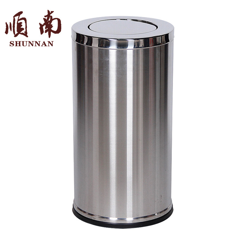 Cisnan Port Style Stainless Steel Trash Can Round Clamshell Vertical Trash Cans Mall Hotel Peel Rocking Cover Containing Silo-Taobao