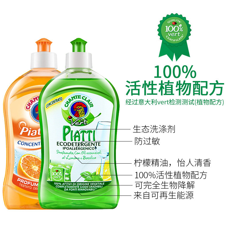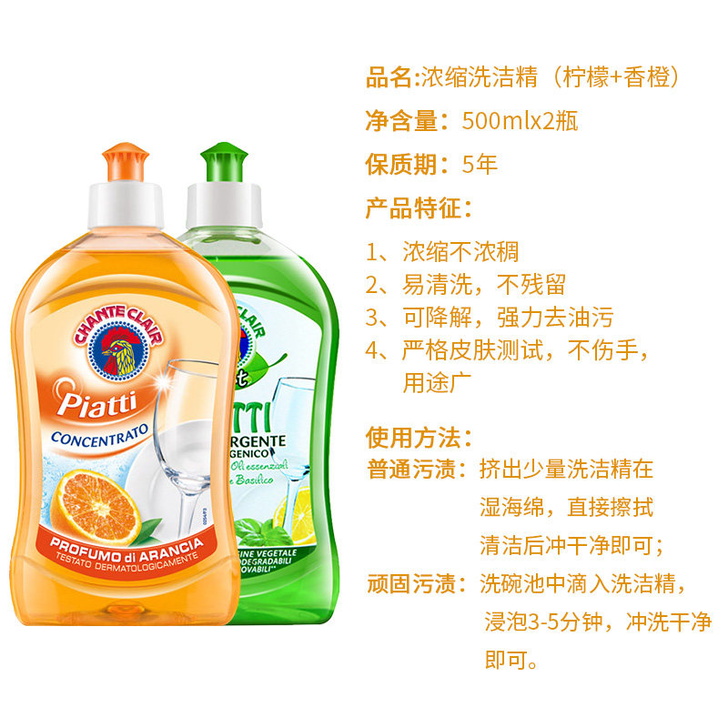 Italy imported Big Rooster plant Formula detergent does not hurt hands Lemon Orange dishwashing liquid 500ml * 2 bottles