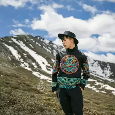 Cloud decoration totem original design men's top Old embroidery hand embroidery ethnic style Tuanlong silk satin baseball uniform jacket