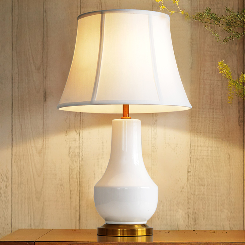 American Simple Ceramic Table Lamp White Bedroom Bedside Lamp Modern Warm Decoration Table Lamp Remote Control Dimmable